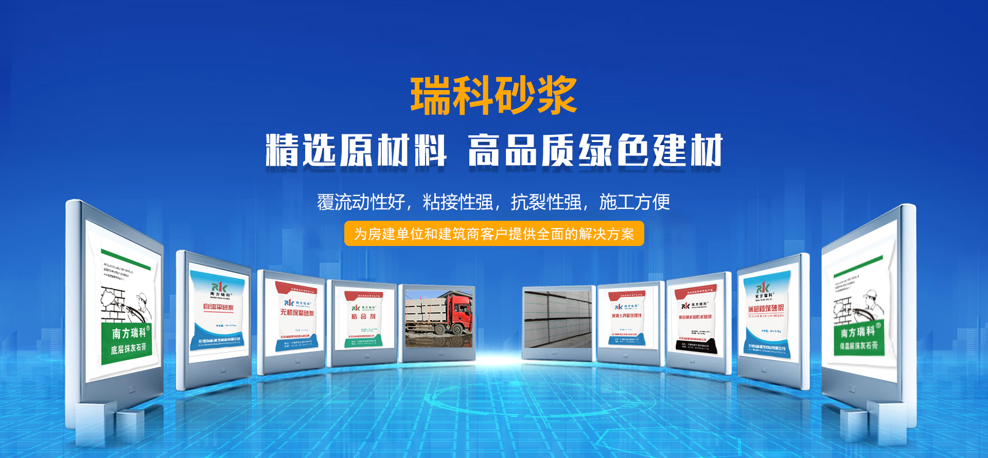從建公司伊始,瑞科人便把產品的質量當做是自己的生命,目前我公司“瑞科”不僅有普通砌筑抹灰砂漿,還擁有種類多樣的特種砂漿;例如:石膏砂漿(底層抹灰石膏砂漿、面層抹灰石膏砂漿、輕質底層抹灰石膏砂漿、保溫層抹灰石膏砂漿);抗裂砂漿{聚苯板}(EPS)、擠塑板(XPS)、水泥發(fā)泡板};粘結劑(陶瓷磚粘結劑、保溫板粘結劑);防水砂漿(普通防水砂漿、聚合物防水砂漿);地面砂漿(普通地面砂漿、水泥基自流平、石膏基自流平)等。同時我們還擁有蒸壓加氣塊,ALC板等建筑材料,堪稱高品質綠色建材,深受房建單位和建筑商的歡迎。